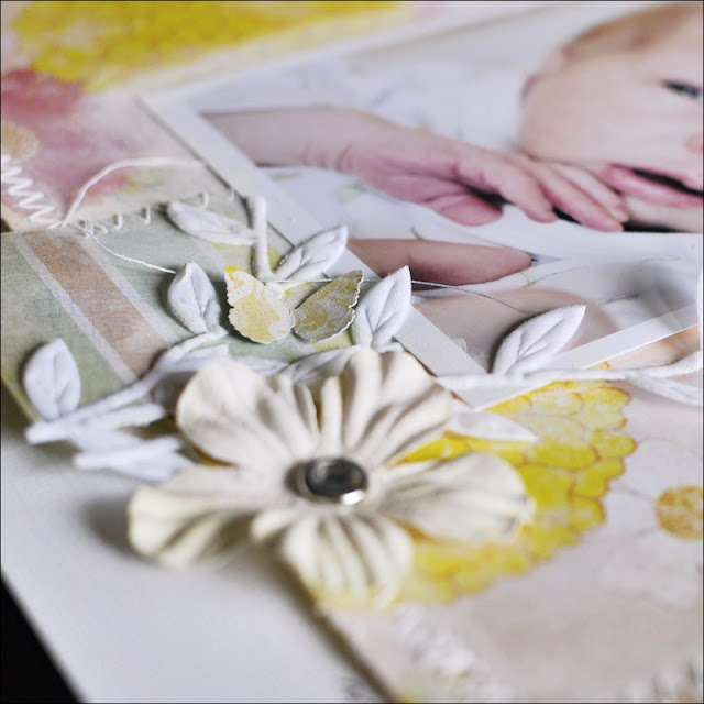 The "blobs" were made with Tattered Angels Glimmer Glam in Mermaid and the "wings" were created using one of the banner stamps, included in the main kit. The window was painted with acrylic paint and distress crackle paint and I then rubbed some distress ink (broken china) into the cracks.